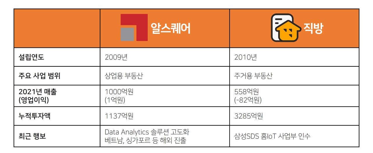 프롭테크 분야별 1위 업체 (알스퀘어, 직방) /사진 출처=원문